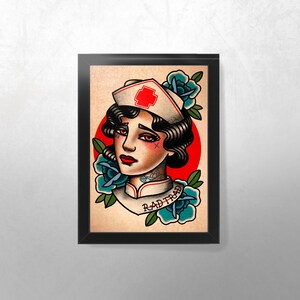 Nurse Rose Of No Mans Land Traditional Tattoo Flash A4 Print Etsy